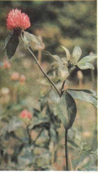| 545 КОНЮШИНА ЛУЧНА івасик, конюшина червона, око козине; клевер луговой Trifolium pratense — багаторічна трав'яниста розсіяно-опушена рослина родини бобових. Стебла численні, висхідні, дуговиднозігнуті, розгалужені, 20—60 см заввишки. Листки трійчасті; листочки широкояйцевид-ні або видовжені, цілокраї, часто з виїмкою на верхівці. Прилистки яйцевидні, плівчасті, на дві третини прирослі до черешка, різко звужені в тоненьке вістря. Квітки дрібні, неправильні, сидячі, рожеві, червоні або пурпурові, у головчастих суцвіттях на верхівках пагонів,- чашечка з 10 жилками, зовні воло-хатоопушена. Плід — біб. Цвіте у травні — серпні. Поширення. Конюшина лучна трапляється на узліссях, серед чагарників, по тальвегах балок, на заплавних луках по всій території України. Заготівля і зберігання. Для виготовлення ліків використовують головки-суцвіття (Flores Trifolii pratensis). Збирають їх разом з верхівковими листочками під час повного цвітіння рослини. Після попереднього пров'ялювання на сонці сировину досушують під накриттям або в приміщенні, яке добре провітрюється, ![]() |