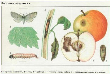 Літ метеликів починається під час цвітіння персиків. Активніше літ відбувається ввечері і триває 10—14 днів, а навесні й восени навіть довше. Метелики того покоління, що перезимувало, починають відкладати яйця через 2—5 днів після початку льоту при температурі повітря не нижче +15,5 °С. Самки відкладають яйця із нижнього боку листків на молодих пагонах персика, вишні, сливи, а на яблуні й айві—з верхнього боку листків і на молодих пагонах персика та груші. Одна самка відкладає до 200—400 яєць. Через б—8 днів із яєць відроджуються гусениці і вгризаються в середину молодих пагонів, де живляться протягом 8—12 днів. Після закінчення живлення гусениці залишають пагони й заповзають під кору, на пагони, плоди та в інші місця на заляльковування. Через 5—12 днів вилітають метелики другого покоління.